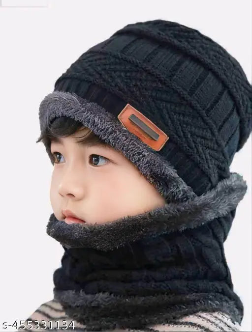 Knit Woolen Warm Cap with Neck Scarf Set Beanie
